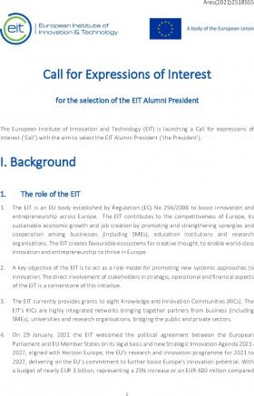 Call for Expressions of Interest for the selection of the EIT Alumni President