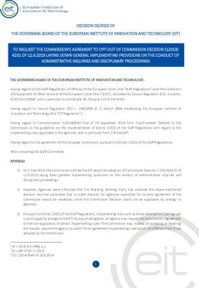 • GB Decision ON ADOPTING THE EIT BUDGET AMENDMENT No 2/2020