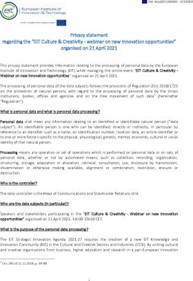 Privacy statement regarding the EIT Culture & Creativity - webinar on new innovation opportunities