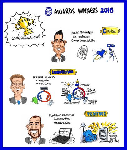 The EIT Venture Award, which celebrates breakthrough innovations and exciting start-ups, was given to Florian Schneider, a Netherlands-based entrepreneur who is co-founder of Nerdalize, which heats houses with computer power. He said: