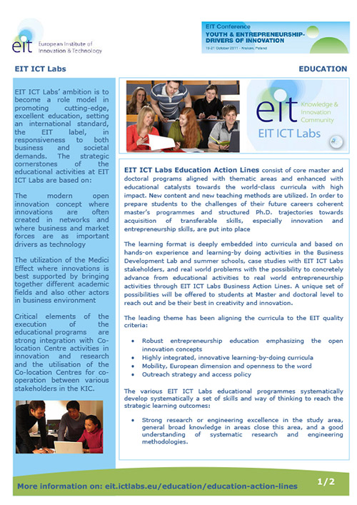 Document Publication Date 19/10/2011 12.00 Document type Other Document file 20111014_Krakow_KIC_Education_overview.pdf About this page EIT Community EIT EIT Digital Subject Audience Entrepreneurs Business Public Authorities Researchers Students Universities