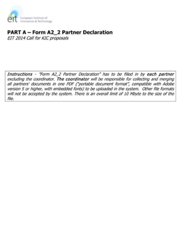 EIT 2014 Call for KICs proposals - Annex A2.2 - Partner declaration