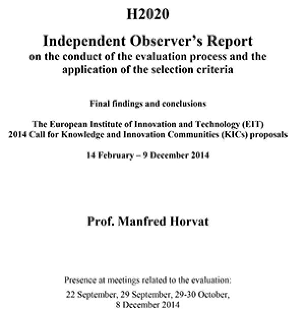 Independent Observer’s Report on the conduct of the evaluation process and the application of the selection criteria for the EIT KIC Call 2014